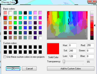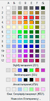 或者按下 "更多颜色和透明度"键,弹出完整的 "选择颜色"对话框,在这里你可以选择任何颜色并应用任何透明度。