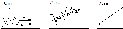 R² 是一个介于 0.0 到 1.0 之间的分数,且没有单位。 R²值为0.0意味着已知X无法帮助预测Y。X与Y之间不存在线性关系,最佳拟合直线是一条通过所有Y值均值的水平线。当R²等于1.0时,所有数据点都精确地落在直线上,且无散布。已知X即可完美预测Y。