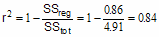 在本示例中,Y的总方差中有84%由线性回归模型“解释”。线性回归模型中数据的方差(SS)仅占Y值总方差(SStot)的16%。