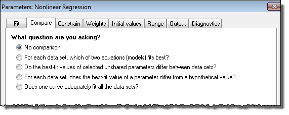 在用回归分析拟合生物数据时,您的主要目标通常是区分不同的模型,判断实验干预是否改变了某个参数,或者判断参数的控制数据是否与理论值存在显著差异。进一步了解这四种比较方法。当然,您的选择必须基于您的实验目标。