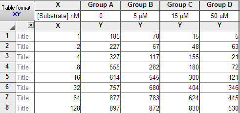 底物浓度输入到 X列,抑制剂浓度输入到列标题中。