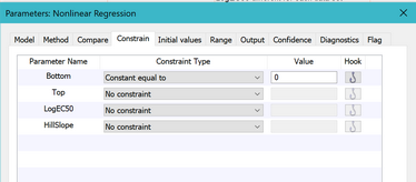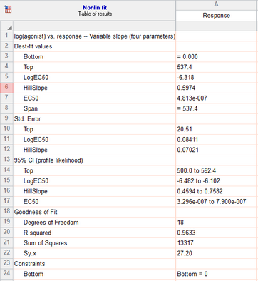 这些数据在计算时已扣除基础非特异性反应。这意味着您知道在极低浓度的激动剂(即极低的 X 值)下,反应(Y)必须为零。Prism 需要知道这一点才能合理地拟合数据。