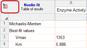 您无需重新进行拟合。只需点击结果表左上角的按钮,即可返回非线性回归对话框。