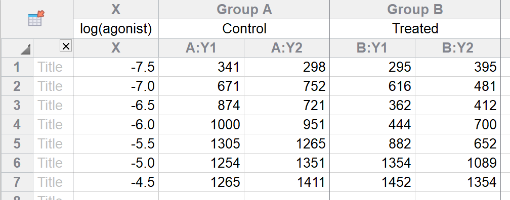 X 值为激动剂浓度的对数。请注意,“1e-9”与 0.000000001 完全相同。若要输入对数,请输入“-9”。