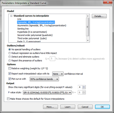 选择方程:S型曲线、4PL、X 为 log(浓度)。请注意,4PL 代表四参数方程,这是此类方程的别称。