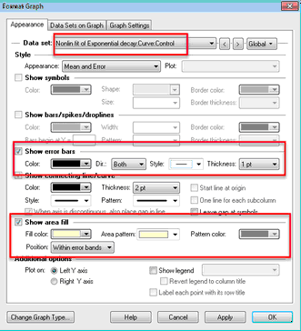 •您还可以选择在误差带内显示区域填充。