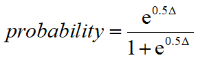 基于AICc值的差异,Prism会计算并报告每个模型正确的概率,这些概率之和为100%。 如果一个模型比另一个模型正确的可能性高得多(例如 1% 对比 99%),您应选择该模型。如果可能性的差异不大(例如 40% 对比 60%),则表明两个模型都有可能正确,因此需要收集更多数据。这些概率通过以下公式计算,其中 Δ 表示 AICc 值之间的差值。