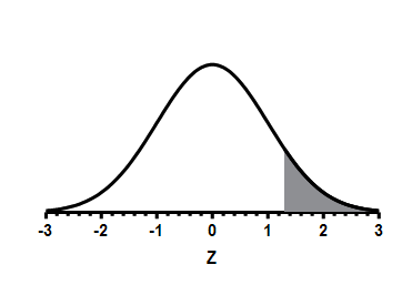 下图将两条已绘制的函数合并到同一张图表中。第一次绘制函数时,我选择了高斯分布,X 轴范围为 -3 到 3。我将均值设为 0.0,标准差设为 1.0,振幅设为 100.0(该数值为任意设定,因为我隐藏了该坐标轴)。 随后我重复了该分析,但这次将 X 轴范围设为 1.3 到 3.0。我将两条曲线绘制在同一张图上(“更改”...“添加数据集” - 请记住,通过此分析生成的曲线在 Prism 中被视为“数据集”)。对于较短的那条曲线,我选择了创建面积填充。