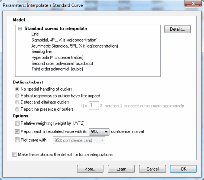 在“待插值的标准曲线”列表中选择“直线”。除非有特殊原因,否则该对话框中的其他选项可保留默认值。