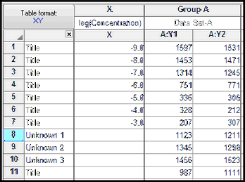通常会为未知样本输入重复测定值,如下所示。