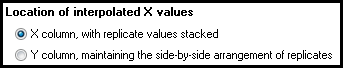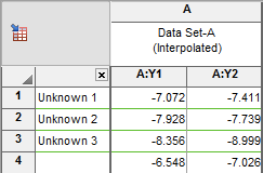 当您选择此选项时,插值值将显示在 Y 列中,且不显示 X列。您可以查看插值值及其名称(如果您输入了行标题)。但您输入的 Y 值不会显示。