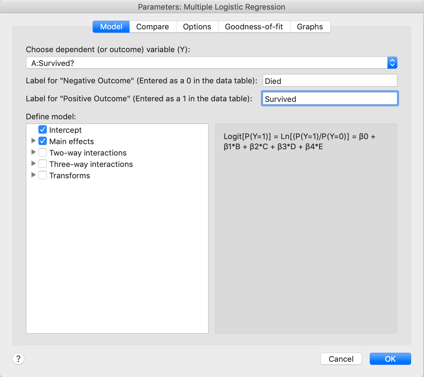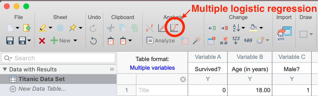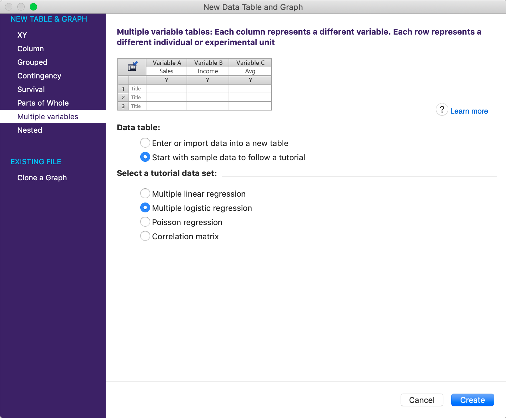 本指南将带您逐步了解如何使用 Prism 进行多元逻辑回归。逻辑回归功能是在 Prism 8.3.0 版本中新增的