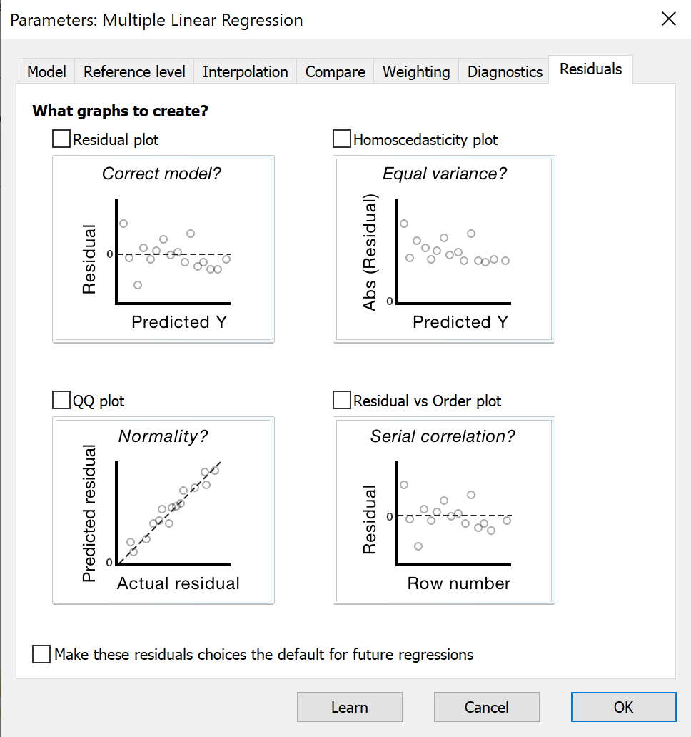 若选择不等权重,所有残差图均显示加权残差,而非实际残差。