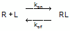 您测量的结合量即RL复合物的浓度,因此将其绘制在Y轴上。您改变所添加配体的量(可假设其等同于游离配体L的浓度),从而构成X轴。经过一些简单的(但繁琐的)代数运算,可得出以下方程: