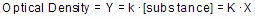 •如果溶液变得非常深(光密度非常高),以致几乎没有光到达检测器,该模型在高浓度下也可能失效。此时,仪器的噪声可能会超过信号。