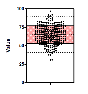 •至少89%的数值必须落在均值±3个标准偏差范围内