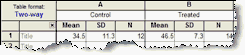 •要添加表示显著性水平的星号,请从结果表中复制相关内容并粘贴到图表上。这会生成一个动态链接,因此如果编辑或替换数据,星号的数量可能会发生变化(或变为“ns”)。使用绘图工具在星号下方添加一条线,然后右键单击并将其箭头设置为“向下半箭头”。
