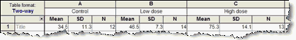 将每个组的数据输入到单独的列中。两个组的大小不必相同(留空部分单元格是可以的)。如果数据为非配对数据,则无需输入行标题。
