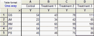 对于重复测量数据,每一行代表一个不同的受试者或实验。可选地,使用行标题标识每一行。