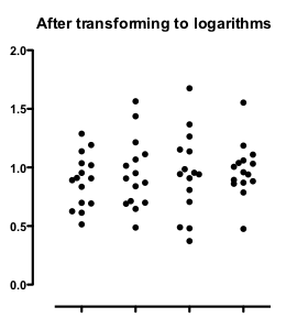 那些看似异常的点消失了。Grubbs 检验未发现异常值。这些极端点之所以看似异常,是因为极大的数值在对数正态分布中很常见,但在高斯分布中却很少见。如果未能意识到该分布是对数正态分布,异常值检验的结果将极具误导性。